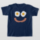 A faced breakfast! This happy face is made of two eggs (sunny side up, please) and a curved piece of bacon. A funny graphic t-shirt to show your love of breakfast!