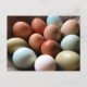 A beautiful collection of a  full dozen assorted chicken eggs in various colours and sizes laid by free range farm hens of different breeds. White, cream, biege, coffee, blue, olive green and even speckled eggs!