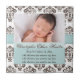 This sweet and elegant eggshell blue and brown damask custom ceramic tile makes a beautiful new baby photo gift, unique baby boy announcement or baptism or christening gift. This customisable tile can be personalised with the baby's name and anything else you'd like say beneath it. This pretty tile can be framed or added to a keepsake box. Designed by Chrissy H. Studios, LLC.