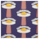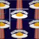 Vector cartoon illustration of a delicious sunny side up fried egg UFO with a yummy bacon slice tractor beam with EGGSTRATERRESTRIAL text. Keywords: egg, bacon, breakfast, UFO, alien, sunny, side, cartoon, space, extraterrestrial, food, cute, yolk, sci-fi, science, fiction, martian, humour, meat, pork, abduction