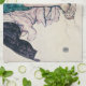 Egon Schiele Seated Woman kitchen towel. Crayon, Gouache, and watercolor on paper from 1917. One of Austrian artist Egon Schiele’s most famous works, Seated Woman with Bent Knee features a pretty young redhead wearing black tights resting her cheek on her knee. A beautiful gift for fans of Egon Schiele, Expressionism, and Austrian Art.
