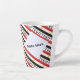 Latte mug has the Egyptian flag with the word EGYPT underneath in black letters. Design is tiled diagonally for artistic effect. A white fractal of squiggly squares leaves a place for your name for added personalisation or a customised gift. The flag is a horizontal tricolor of red, white, and black with a golden Egyptian eagle of Saladin in the centre.