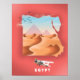 Egypt travel poster print illustration featuring the desert and a pyramid in the distance.