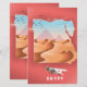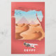 Egypt travel poster print illustration featuring the desert and a pyramid in the distance.