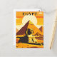 A bold vintage-style postcard of Egypt featuring the Great Sphinx and the pyramids against a glowing desert sunset. A perfect collectable for travelers, history lovers, and Egypt enthusiasts.