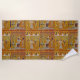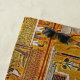 A beach towel with ancient art like from the tombs of a Pharaoh in Egypt. Bold Egyptian decor with a gold color background.
