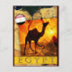 Map of Egypt from outer space with Egyptian camel, sunset, pyramids, Egyptian flag on a button and Egypt in all caps in dark gold font.
