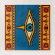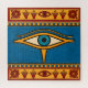 Depiction of the Egyptian "Eye of Horus" symbol in gold and blue color palette.
