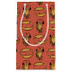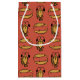 A chic Small Gift Bag, with a pattern of traditional Egyptian motifs, Fish and Crocodiles, on a Rusty Red background. Part of the Posh and Painterly "Egyptian" collection, this pattern can easily be adjusted to fit any Gift Bag.