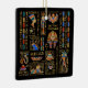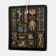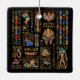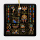 Egyptian hieroglyphs and deities on black ceramic ornament