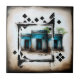 Egyptian huts in bauhaus style brilliant design.. Unique design rich in texture. Watercolour paint style. Perfect for kitchen, bathroom decoration.