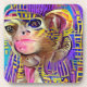 Portrait of an Egyptian Pharaoh monkey in purples, pinks, blues and yellows. A. I. and artist collaboration.