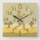 This humourous design custom wall clock has a cute cartoon Egyptian mummy. It's walking like an Egyptian. There are pyramids in the sand in the background.