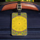 Gold/Yellow: The dominant colour, used for both the central design and the background pattern. It evokes warmth, richness, and a sense of ancient or historical significance.