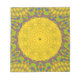 Central Circular Motif: This intricate design, resembling a stylised sun or flower, features radial symmetry and detailed patterns akin to a mandala, creating a sense of harmony and balance.