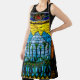 This impressive apron displays a Tiffany-Style stained glass Egyptian pyramid scene with bright colours.