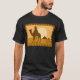 A fabulous Egyptian poster t-shirt design set in the desert with pyramids on the horizon.