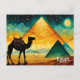 Desert camel with Egyptian pyramids postcard. Easily customise the message for your needs.