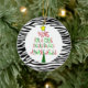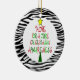 Ehlers-Danlos Christmas tree ornament features the words Hope for a cure Ehlers-Danlos awarness in red, green and light green text in the shape of a Christmas tree with a yellow star and a round black zebra stripes accent border on a white background on the front and back.