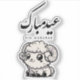 This festive design showcases the Arabic greeting “Eid Mubarak” paired with a friendly ram illustration inspired by Eid al-Adha traditions.
