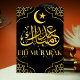 Eid Mubarak Custom Name Elegant Modern Black Gold