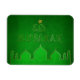 Elegant Eid Mubarak greeting illustration: Eid Mubarak greeting with a mosque silhouette in green and gold.