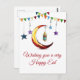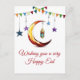 Eid Mubarak cards for Muslims, design this Postcard with watercolor Islamic crescent and lantern, you can personalise this card with Eid greeting and send it to anyone you love.