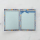 A simplistic scrapbook style Eid card with beautiful Arabic calligraphy set within a silver frame. The floral patterned texture like print on the front and bow give a homey and loving feel to this card. The inside matches the themed design but was left blank for you to include your own holiday greetings. Order this card as is and include your message written by hand. Or you can customise the product before you place your order to have the message included in the print for a more polished look and feel. Either way the recipient will enjoy this item on Eid day. Purchase today for Eid.