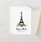 These elegant holiday postcards say "Joyeux Noël" in French black modern typography, along with an image of the Eiffel Tower surrounded by green Christmas pine branches and pine cones. Personalise the back with your own message. We have used some art from LABFcreations.