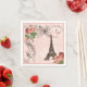 The Eiffel tower and pink roses are on a soft pink background with French script writing.