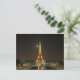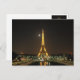 Eiffel Tower lit at night with a full moon overlooking Paris. Eiffel lighting © SETE- illuminations Pierre Bideau