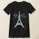 A multi-coloured Eiffel Tower stands alone with a whimsical "Paris" raining confetti in the background.