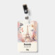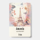Name tag with a stylised Eiffel tower image surrounded by pretty butterflies and delicate garden flowers.