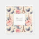 Paper napkins with an elegant pattern. Pink roses, blue-grey butterflies and an Eiffel tower. A French themed pattern.