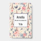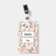 Name badge with an elegant pattern. Pink roses, blue-grey butterflies and an Eiffel tower. A French themed pattern.
