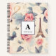 Spiral notebook with an elegant pattern. Pink roses, blue-grey butterflies and an Eiffel tower. A French themed pattern.