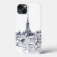 © Avery Tillmon / Wild Apple. A black and white sketch of the Eiffel Tower.