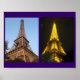 Photographs of the Eiffel Tower taken in the daytime and at night are placed together to make a beautiful poster. Photos taken by LRF.