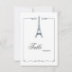 Classy and elegant wedding table place card. Features the Eiffel Tower with an ornate frame. Great for a Paris or French wedding theme. Add your own wording. CONTACT "MARLENEDESIGNER" IF YOU WANT THIS DESIGN IN ANOTHER COLOR.