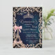 A modern, chic and glamorous invitation with an elegant gold tiara, Eiffel Tower with pink bow, and glitter butterflies on a navy blue background.