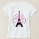 Graphic Design of the Eiffel Tower in Paris, France with elegant floral swirl designs.