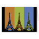 Bonjour! The Eiffel Tower in Paris Triptych design is comprised of three vertical panels each in a different colour, a deep sky blue, burnt orange and bright green tones. The three black Eiffel Towers are displayed in the contrasting colours of the background panels. Celebrate the City of Lights and the Eiffel Tower with the Eiffel Tower in Paris Triptych pop art design.