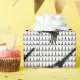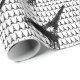 Eiffel tower gift wrap in black and white on glossy paper for French flair.Large Eiffel Tower with a background print of mini towers.