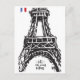 *~* Eiffel Tower Paris Black Outline White Postcard