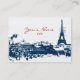 An artsy Paris skyline is featured on this custom business card. From an antique postcard, this design features the Eiffel Tower and a city scene. Scene is navy blue and can be placed on any colour background, simply click on "customise it," then "edit" and "background." You may also change the font style and colours. Also available in different colours in my store.