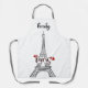 The Eiffel Tower with calligraphy lettering "Paris" and red love hearts. Chic apron. The name is editable or clear if not required.