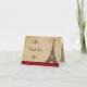 Finish off a romantic Parisian themed bridal shower with a unique thank you card meant to look like a postcard from a bygone era. The background is reminiscent of an aged letter with subtle engraving, cursive handwriting and visa and postage stamps. The Eiffel Tower is dominant on top of a maroon panel. The paper background is repeated on the interior printing behind your personalised message which can also be deleted so that the sender can handwrite their own message. Available with matching products.