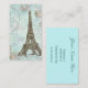 Lovely business cards with soft aqua blues and pinks behind the Eiffel Tower. Very soft French script writing and scrolls also in the background. If you need help with personalising contact greer at greerdesign@aol.com