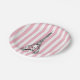 Enjoy our Eiffel Tower illustration pink stripe paper plates for your child’s party.