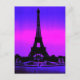 The Eiffel Tower, a French landmark, with a pink and purple backround